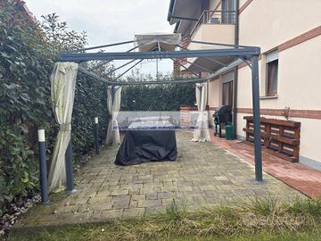 Tutti gli ambienti affacciano sull'esclusivo giardino privato di circa 250 mq, una vera oasi verde ideale per momenti di relax e vita all'aria aperta in totale riservatezza, anche grazie al gazebo che permette l'utilizzo non solo nella stagione estiva. Tutta l'area esterna è illuminata anche da lampade su tutto il perimetro. Infine per aver un aiuto nel tagliere l'erba del giardino in fase di costruzione è stato installato sotto tutto il giardino l'impianto a serpentina per il ROBOT TAGLIAERBA