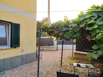 All'esterno troviamo un giardino privato con area piastrellata, pergolato con uva e zona relax, oltre a un posto auto di proprietà.
