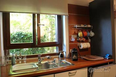 Nato come casa-studio, è un appartamento dotato di un open-space con zone ben distinte dedicate a cucina, soggiorno e studio. La camera da letto è essenziale, ma dotata di un ampio guardaroba. Bagno con doccia e bidet. Un'ampia vetrata sul giardino è la caratteristica principale del salotto, così come la libreria che accompagna la permanenza in casa. Non è un appartamento anonimo, infatti ha una sua forte personalità. L'appartamento ha il dono di far rilassare e far sentire a casa propria. Rigido controllo documenti, nnon è permesso l'accesso a persone non autorizzate. Quartiere estremamente silenzioso- Parcheggio sempre disponibile all'ingresso. Minimo 5 giorni