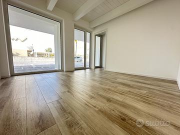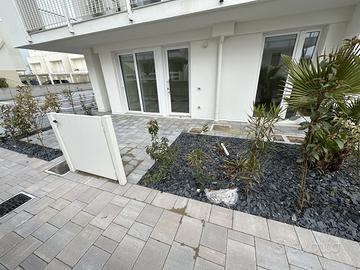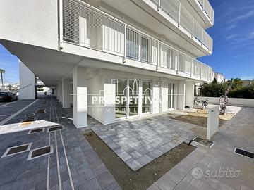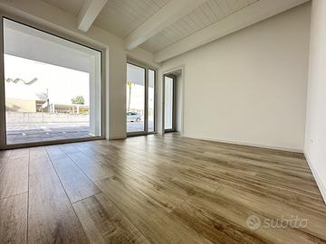 L' appartamento sorge su un complesso di nuova costruzione disposto al piano terra, perfetto per chi cerca comfort e modernità. L'ampio soggiorno, luminoso e arioso caratterizzato da ampie vetrate è dotato di un angolo cottura, ideale per preparare deliziosi pasti e trascorrere piacevoli momenti in compagnia.