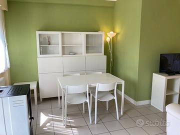 Piccola palazzina ove ubicato il bilocale con ingresso esclusivo. Entrata direttamente su salotto soggiorno con cucinino a parte.