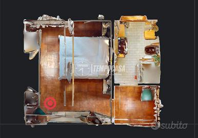 L'ingresso si apre direttamente sul tinello, caratterizzato da una zona dedicata al soggiorno e al cucinotto