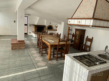 cameretta, camera da letto e bagno con una veranda esterna con lavanderia e una veranda interna che porta tramite scala in mansarda di proprietà di 50 mq composto da un unico ambiente con cucina in muratura, barbecue e forno a legna più un piccolo bagno con doccia. L'intera parete della mansarda è fatta tutta a vetri per una veduta mozza fiato. Sotto ci sono 3 garage di pertinenza.uno è di 15 mq, uno di 16 mq, uno di 6 mq più locale deposito di 5 mq. La richiesta è 160.000 trattabili