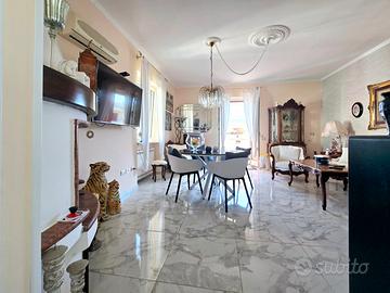 A completare questo immobile, due bagni di cui uno completo di sanitari, lavabo e vasca da bagno, finestrato utile per il ricircolo d'aria. Mentre il secondo di servizio, completo di lavabo, wc e box doccia.