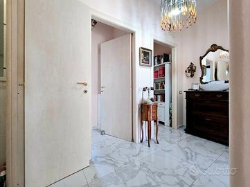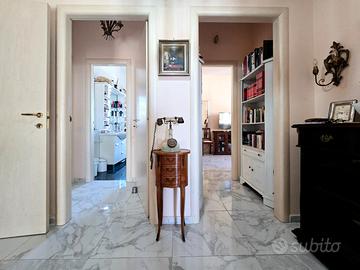 Proseguendo nell'abitazione incontreremo la zona notte, composta da ben due camere da letto, la prima con letto matrimoniale e comodissima cabina armadio, mentre la seconda momentaneamente adibita a studio ma si presta perfettamente a diventare la seconda camera di questo appartamento, dotata inoltre di doppia esposizione e da qui, tramite porta finestra, si accede al secondo balcone.