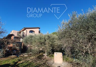 La proprietà comprende taverna con angolo bar e camino, garage , cantina e lavanderia a piano terra e 800 mq circa di giardino con ulivi e pozzo.