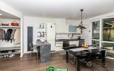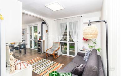 L'immobile si compone di una zona giorno con cucina a vista, luminosa e ben organizzata, e di un bagno finestrato con box doccia. La zona giorno si affaccia direttamente sull'ampio giardino privato, perfetto per momenti di relax o per pranzi all'aperto.