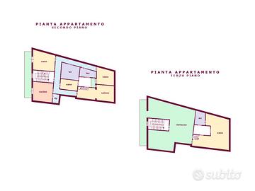 Avente una superficie di circa 165 m² e situato al secondo e terzo piano di un piccolo edificio composto solamente da un'altra unità abitativa, attualmente si compone al secondo piano da cucina semiabitabile, comodo salone, tre vani, ripostiglio, lavanderia, servizi igienici e due balconi, ed al terzo piano, accessibile da scala interna e da vano scala, da un ampio locale con camino adibito a soggiorno/taverna, servizi igienici e terrazzo a livello di circa 90 m² con angolo barbecue in muratura. E' compreso posto auto assegnato su corte di ingresso in comune con l'unità al primo piano.