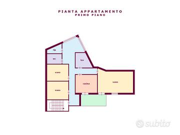 Avente accesso da piccola strada privata ed una superficie di circa 110 m² e situato al primo piano di un piccolo edificio, attualmente si compone da ingresso, cucina semiabitabile con affaccio su un piccolo terrazzino a livello, tre ampi vani, servizi igienici, lavanderia e ripostiglio. E' compresa terrazza sovrastante, anch'essa di circa 110 m² e con accesso dal vano scala condominiale.