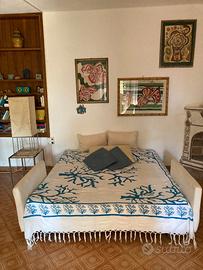 Dal soggiorno si accede alla cucina, disposta in linea, che si apre tramite porta finestra sul terrazzo interno, anch'esso pavimentato in cotto e immerso nel verde, ideale per pranzare all'ombra. La zona notte è composta da una camera matrimoniale con armadio su misura a tutta altezza e aria condizionata. Il bagno, finestrato, è di buone dimensioni ed è attualmente dotato di doccia, lavatrice e scaldabagno nuovo (installato nel 2024).