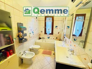 Gli infissi esterni, che sono in legno con doppio vetri, sono dotati di zanzariere e persiane in alluminio, mentre quelli interni sono in legno di colore scuro. Forma accessorio dell'appartamento un comodo box auto al piano seminterrato