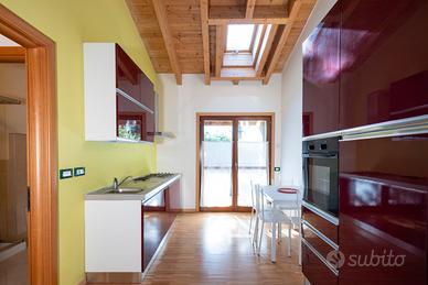 La proprietà, progettata per garantire una razionale distribuzione degli spazi interni, si compone di zona living con cucina a vista, zona notte separata, lavanderia e bagno. Ad impreziosire l'appartamento, uno splendido terrazzo coperto di 53,03 mq, chiuso con vetrate scorrevoli che rendono quest'ultimo utilizzabile anche nelle stagioni più fredde, cantina e posto auto coperto doppio. L' appartamento risulta essere la soluzione ideale per chi voglia immergersi in un contesto lontano dallo stress della città, allo stesso tempo abbattere i costi di gestione grazie all'ampio uso di risorse rinnovabili e l'assoluta indipendenza dal gas. Esposizione SUD-OVEST-NORD.