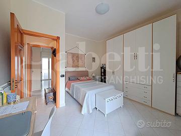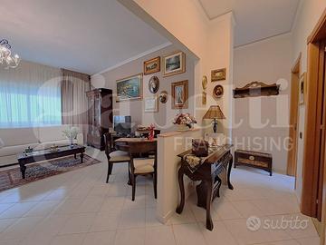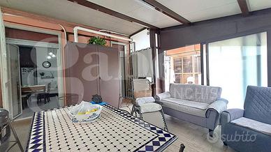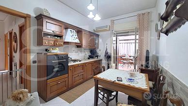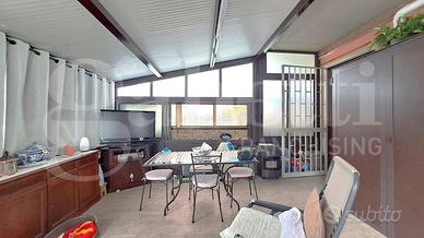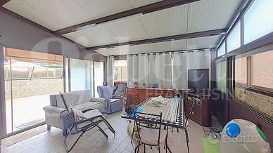 All'ingresso ci accoglie un ampio salone, dal corridoio/disimpegno arriviamo in cucina, la quale è collegata ad una bellissima "veranda" e terrazzo molto ampio, che offre ai proprietari della casa una zona relax in cui poter trascorrere momenti di convivialità con amici e parenti; di seguito troviamo un'ampia camera da letto padronale, una seconda camera, il bagno dotato di box doccia, la lavanderia interna dotata di servizio e lavastracci,