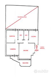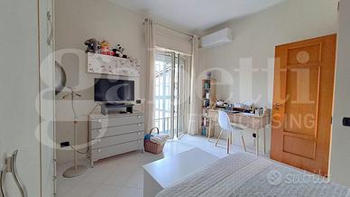 Tra le dotazioni di questo appartamento troviamo un comodissimo doppio ingresso che permette di accedere direttamente in cucina, il riscaldamento autonomo con caldaia a metano, le porte d'ingresso blindate, gli infissi esterni in alluminio con doppio vetro, climatizzatori, posto auto assegnato, grande terrazzo, ed ampia veranda.