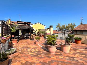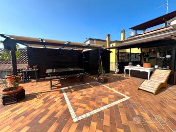 L'immobile si presenta in ottime condizioni interne ed è così composto: ingresso su zona giorno con cucina separata e finestrata dove entrambi gli ambienti affacciano su grande terrazzo di 140 mq ideale per pranzi, cene all'aperto, momenti di relax e per chi ama vivere gli spazi esterni, una camera matrimoniale, una camera doppia ideale anche per ospiti e una camera singola perfetta come studio o stanza hobby, doppi servizi comodi per la vita quotidiana della famiglia, più balcone.