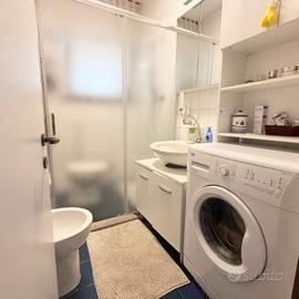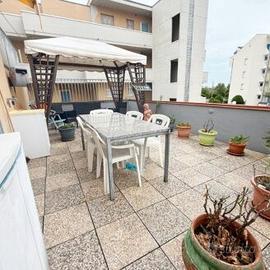 Appartamento posto a piano primo di palazzina a 30mt dal mare con ascensore, composto da; ingresso su ampio soggiorno con angolo cottura, due balconi, camera matrimoniale, camera doppia con accesso diretto all'ampio terrazzo con gazebo e bagno con doccia. Inoltre dispone di posto auto esclusivo e cantina al piano S1.