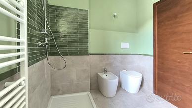 - Bagno spazioso e moderno, ben rifinito e con ampia finestra, completo di sanitari, spaziosa cabina doccia e ampio lavabo.