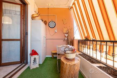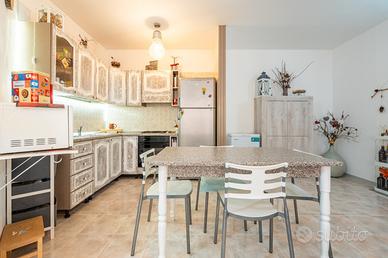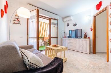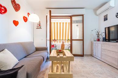 L'ingresso si apre su un luminoso soggiorno con angolo cottura, cuore della casa, con accesso diretto a un terrazzo vivibile, perfetto per pranzi, cene e momenti di relax all'aria aperta. La zona notte comprende un disimpegno, una camera matrimoniale, una camera singola e un bagno finestrato, dal quale si accede a un secondo terrazzino.