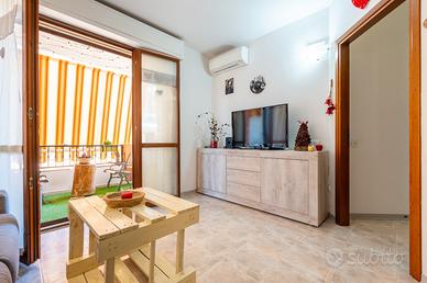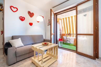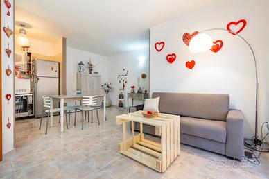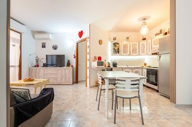 L'ingresso si apre su un luminoso soggiorno con angolo cottura, cuore della casa, con accesso diretto a un terrazzo vivibile, perfetto per pranzi, cene e momenti di relax all'aria aperta. La zona notte comprende un disimpegno, una camera matrimoniale, una camera singola e un bagno finestrato, dal quale si accede a un secondo terrazzino.