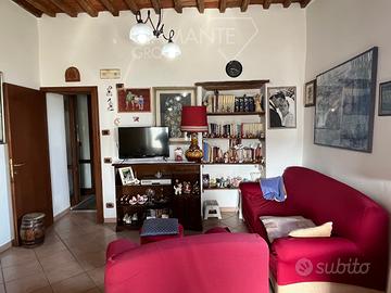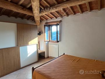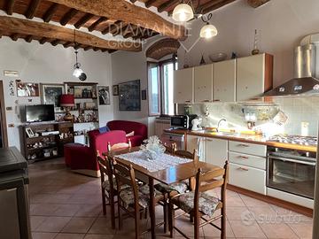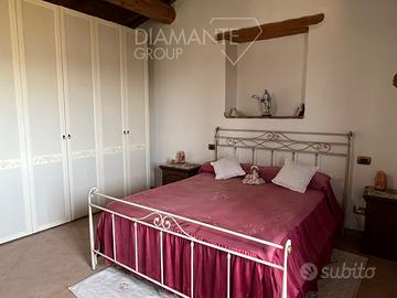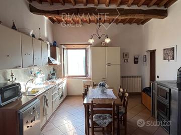 La proprietà, completamente ristrutturata dopo gli anni 2000, comprende soffitte con pianelle e travi in legno a vista, riscaldamento a pellet e metano, garage di 13 mq circa, cantina e terreno distaccato di 460 mq circa con piante di olivo e pozzo.