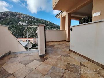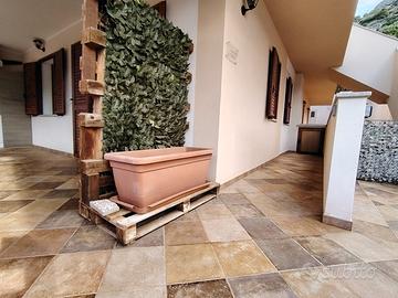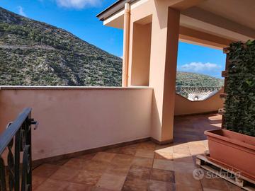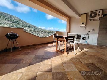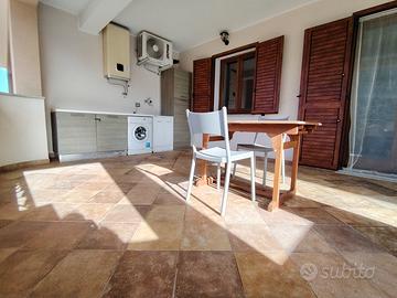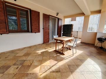 o ampia veranda di pertinenza esclusiva, con affaccio sulla città di Buggerru e vista mare, attrezzata come zona barbecue e lavanderia, ideale per pranzi e cene all'aperto e per svolgere comodamente le faccende domestiche.