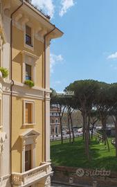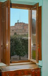 L'appartamento si distingue per gli ampi spazi, i soffitti alti e le grandi finestre che inondano ogni ambiente di luce naturale. Varcando la soglia, si è accolti da un ingresso spazioso che conduce al magnifico soggiorno, dal quale si può godere di una vista esclusiva su Castel Sant'Angelo, un simbolo intramontabile della città.