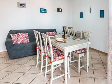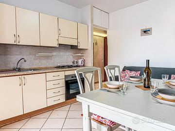 L'appartamento è ben arredato, dotato di aria condizionata nella zona giorno, posto auto privato e riserva d'acqua interrata sotto il parcheggio.