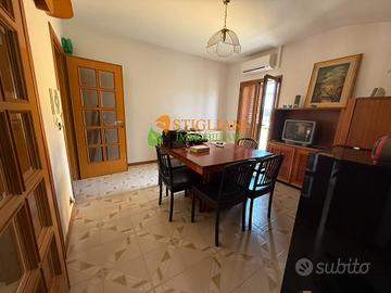Rif: 26065 Contrada Macchie, a poca distanza da Via Garibaldi, luminoso appartamento di metri quadrati 100 circa posto al secondo piano di un'abitazione indipendente con ingresso condominiale; composto da, ingresso con accesso al salone completo di camino e balcone, cucinotto, tinello con veranda, disimpegno, 2 camere da letto e bagno; garage al piano terra di metri quadrati 30 circa con annesso bagno, deposito attrezzi e pollaio. Completa la proprietà il terreno privato recintato di metri quadrati 750 circa. soluzione per chi cerca indipendenza e spazi verdi vivibili. Impianto di riscaldamento autonomo, climatizzato. Possibilità di vendita completo di arredi, inclusi nel prezzo. Rif. 26065