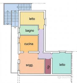 L'accesso all'abitazione avviene tramite una scala esterna di proprietà che conduce a un grazioso terrazzino, spazio che anticipa l'ingresso indipendente. Una volta varcata la soglia, veniamo accolti da un soggiorno luminoso che comunica con una spaziosa cucina abitabile. Un pratico ripostiglio completa la zona giorno. La zona notte si compone di una camera matrimoniale, una camera singola e un bagno.