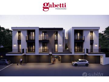 Ogni appartamento è composto da una spaziosa zona giorno con cucina openspace, disimpegno, due camere da letto, un bagno finestrato e logge coperte che prolungano lo spazio abitativo verso l'esterno. Completa la proprietà un giardino esclusivo, perfetto per momenti di relax o per chi ama vivere gli spazi verdi in piena privacy. Una comoda scala interna collega direttamente all'ampio garage di proprietà, con la possibilità di acquistare separatamente anche un posto auto privato.