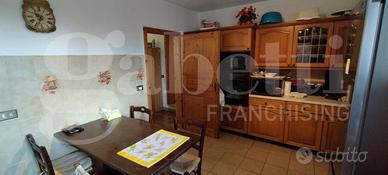 L'appartamento si sviluppa su tre livelli: ingresso con un piccolo bagno al piano terra, cucina e soggiorno/pranzo al primo piano. La zona notte, con tre camere da letto e un bagno, è posizionata al piano secondo, da dove si gode una bellissima vista del centro abitato.