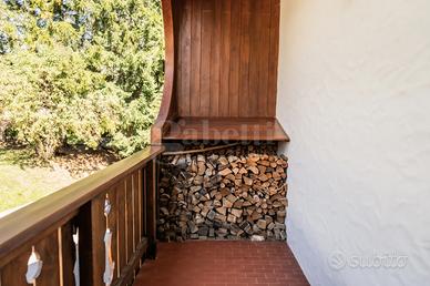 A circondare l'appartamento un ampio terrazzo perimetrale, che regala una splendida vista a 360° sulle montagne circostanti, permettendo di godere di scorci meravigliosi in ogni momento della giornata. Completano la proprietà una pratica cantina e un garage.