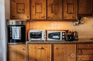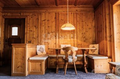 L'ingresso si apre su una zona giorno accogliente e intima, impreziosita da una tradizionale stube e da un confortevole angolo pranzo. Da qui si accede alla cucina, funzionale e ben organizzata, completa di comodo tavolo di servizio.