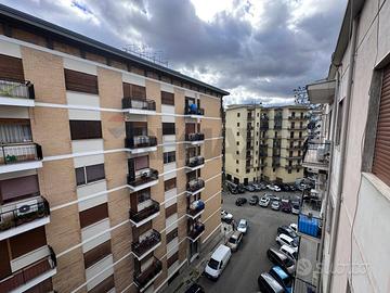 Lattuale distribuzione comprende cinque stanze, cucina separata e servizio igienico; la planimetria consente, mediante interventi contenuti, una diversa articolazione degli spazi interni, con la possibilità di ricavare un secondo bagno, unampia zona soggiorno con cucina a vista e quattro camere da letto di dimensioni regolari. Due balconi, affacciati sui differenti lati delledificio, completano la proprietà, offrendo un adeguato sfogo esterno e una buona ventilazione naturale.
