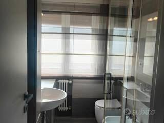 Appartamento composto da: ingresso (con comoda nicchia per armadio a muro), ampia zona giorno (di circa 30 mq) con balcone; angolo cottura, ripostiglio/lavanderia, primo bagno con ampia doccia e box in cristallo, due camere da letto (entrambe con accesso al secondo balcone), una delle quali dotata di bagno in camera, anche questo con ampia doccia con box in cristallo.