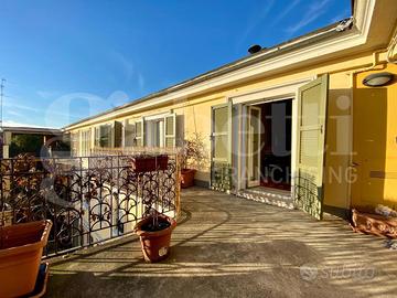 Sito al quarto ed ultimo piano, servito da ascensore, di un'elegante palazzina Liberty, in zona servita e a pochi passi dal Centro Storico, proponiamo in vendita un ampio appartamento, ristrutturato nel 2012, con una terrazza privata di circa 100 mq.