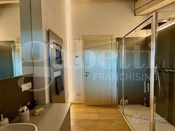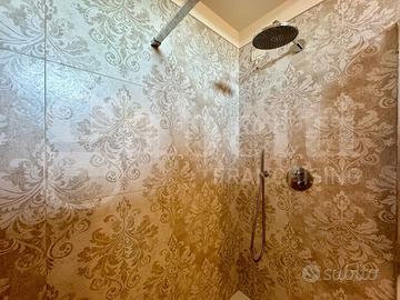 Un corridoio conduce al primo bagno finestrato, dotato di doccia e comoda zona lavanderia. Dal soggiorno si accede inoltre a uno studio, a un secondo bagno finestrato con doccia e, salendo pochi gradini, alla raffinata zona notte: una camera matrimoniale ampia, una camera singola spaziosa e un terzo bagno, anch'esso finestrato e con doccia.