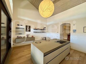L'appartamento è rifinito con parquet in rovere pregiato in tutti gli ambienti, infissi in Corten con vetrocamera, riscaldamento e raffrescamento a pavimento con termostato indipendente in ogni stanza, impianto di deumidificazione a parete e impianto d'allarme.