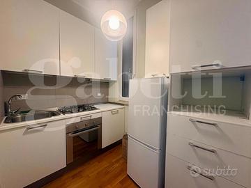 Sito al secondo piano servito da ascensore in curato contesto di sole sei unità, spazioso bilocale caratterizzato da ambienti luminosi e ben distribuiti. L'immobile è stato ristrutturato recentemente, i pavimenti sono in parquet in tutti gli ambienti, i serramenti sono in triplo vetro, è presente l'impianto di climatizzazione, il riscaldamento è autonomo, le spese condominiali sono contenute. Superato l'ingresso troviamo sulla destra la zona living con zona cottura, mentre sulla sinistra troviamo un'ampia camera da letto con bagno di comode dimensioni provvisto di finestra e box doccia. A corredo della soluzione abbiamo una cantina di pertinenza oltre ad un vano ripostiglio sul pianerottolo utilizzabile come lavanderia e possibilità di parcheggio bici nel cortile condominiale.