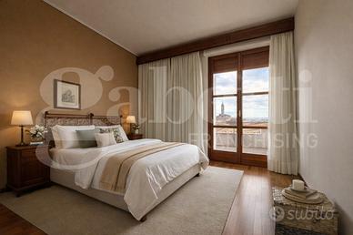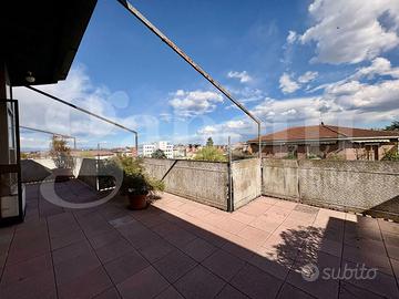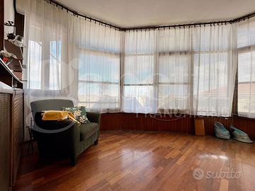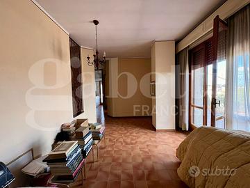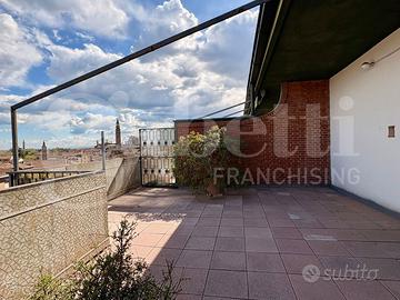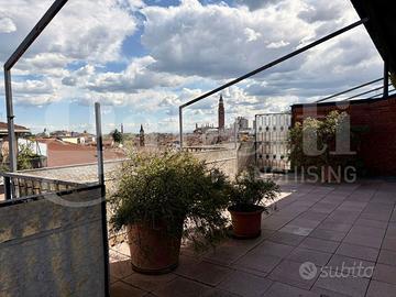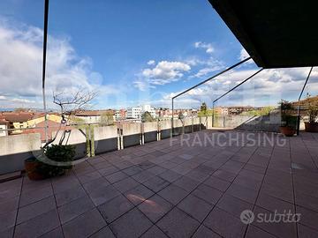 In una graziosa palazzina del centro, ben tenuta e servita da ascensore, proponiamo in vendita un appartamento all'ultimo piano, caratterizzato da ampi spazi e grande luminosità. L'ingresso si apre su un comodo disimpegno che conduce alla zona giorno, dalla quale si accede a una spettacolare terrazza di 125 mq con vista aperta su tutta la città e sulle montagne circostanti, ideale per momenti di relax e convivialità. La cucina è separata dal soggiorno, garantendo funzionalità e comfort. Proseguendo troviamo una raffinata zona verandata con pavimentazione in parquet, dotata di split per il raffrescamento e stufa, perfetta come spazio living aggiuntivo o area relax. La zona notte è composta da due camere da letto, tra cui una matrimoniale con accesso diretto a una seconda veranda e bagno privato. Al piano superiore si sviluppa una suggestiva zona mansardata, anch'essa dotata di impianto di riscaldamento e raffrescamento, versatile e adatta a molteplici utilizzi. La soluzione presenta finiture originali ma ben tenute ed è corredata da un comodo box auto e cantina.