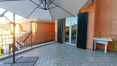 L'immobile è cosi composto: ingresso, cucinotto, luminosissimo soggiorno dotato di divano/letto matrimoniale con doppio accesso a due terrazzi, disimpegno, prima camera matrimoniale con parquet con accesso ad amplissimo terrazzo, primo bagno con finestra vasistas con doccia/massaggio Teuco, seconda camera matrimoniale con parquet con vista mare, letto con doghe in legno regolabili elettricamente materasso in lattice, secondo bagno padronale con finestra vasistas con vasca idromassaggio Teuco.