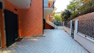 Cupra Marittima, immerso nel verde collinare in zona residenziale tranquillissima , a 1100 metri circa dalla spiaggia sabbiosa, splendido appartamento semi arredato con vista mare, piano terra rialzato, di circa 85 mq, mente diviso, luminosissimo arieggiato esposto su tre lati, (sud, ovest, nord), oltre a due terrazzi per un totale di circa 70 mq, posto auto gratuito,