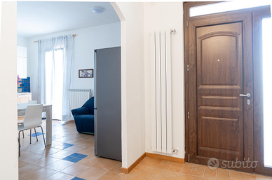 Propongo appartamento con ingresso autonomo, 2 stanze, cucina soggiorno, bagno e lavanderia, circa 80 mq. , dotato di riscaldamento e tutti gli elettrodomestici; frigo, microonde, forno, lavastoviglie, lavatrice e ferro da stiro.