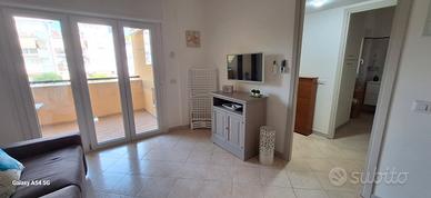 Appartamento in affitto. Situato in un residence silenzioso a mt 300 dal mare. Completamente rinnovato e arredato, luminoso. Composto da un salone all'americana con divano letto matrimoniale, tavolo, tv, credenza, condizionatore. Balcone abitabile - tavolo 4 sedie, tenda. Camera con letto matrimoniale, comò - comodini - armadio due ante, condizionatore. Bagno ampio con doccia, armadio e lavatrice. Cucina attrezzata, bollitore, macchina caffè, frigorifero, piano induzione. Caldaia autonoma a gas, acqua e riscaldamento. Posto auto. Affitto da ottobre a maggio, contratto transitorio. Contatti esclusivamente nelle ore serali.