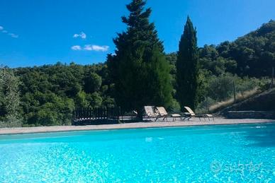 Dispone di piscina 15×7,5 Con servizi , ampio parco e parcheggio, tutto servito con lettini , sdrai, poltrone in ferro battuto.