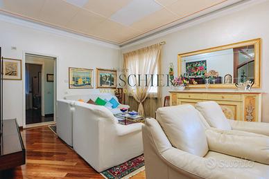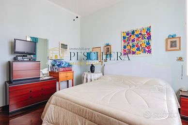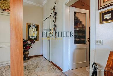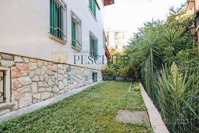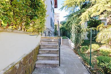 Lappartamento è dotato di doppio ingresso: uno tramite il vano scala condominiale e un secondo accesso pedonale indipendente che conduce direttamente al giardino e al piano seminterrato. Questa caratteristica offre grande flessibilità, rendendo possibile un utilizzo separato degli spazi inferiori.