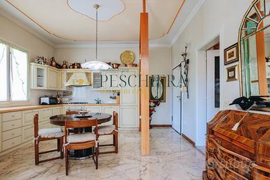 Lappartamento, di generose dimensioni, si sviluppa principalmente al piano terra e si distingue per il suo splendido giardino privato di 250 mq e per un ampio portico coperto di 70 mq, perfetti per trascorrere momenti di relax o intrattenere ospiti allaperto. Lingresso principale si apre su un luminoso soggiorno doppio, impreziosito da un camino passante che collega con eleganza la zona giorno alla cucina abitabile semi separata, creando unatmosfera calda, accogliente e conviviale.