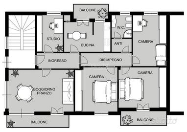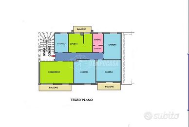 Appartamento di 122 mq al terzo piano composto da ingresso, ampio e luminoso soggiorno con uscita su balcone, uno studio, cucina abitabile anch'essa con uscita sul balcone, 3 camere di cui una con uscita su balcone, antibagno e bagno finestrato. L'appartamento è inserito in una piccola palazzina di sole 3 unità. Completa la soluzione una cantina di 16mq.