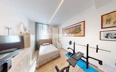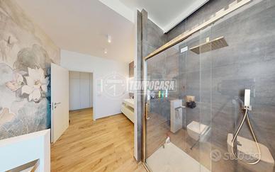 INTERNO in ottime condizioni e rifinito con materiali e dettagli di pregio: infissi Schüco in alluminio con triplo vetro a taglio termico e zanzariere integrate, impianto elettrico ad alta efficienza (livello 2), sistema di riscaldamento, raffrescamento e ricircolo dell'aria canalizzato in tutti gli ambienti e alimentato da pompa di calore da 16 kW, portone blindato con apertura digitale