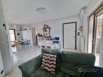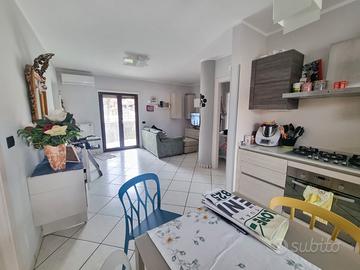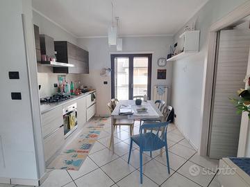 Aiello del Sabato (Av). In zona centrale, residenziale, ben servita e facilmente raggiungibile, proponiamo in vendita un appartamento di mq. 75 circa facente parte di un mini condominio costruzione 2002' non dotato di ascensore. L' immobile posizionato al piano 1°, si compone di ingresso, soggiorno/cucina (unico ambiente), disimpegno, due camere e wc oltre ad ampi balconi posti su entrambi i prospetti del fabbricato. Di pertinenza, un locale autorimessa ubicato sul lato posteriore del fabbricato raggiungibile da scala interna condominiale. Riscaldamento autonomo con alimentazione a metano ed impianto di condizionamento caldo/freddo.